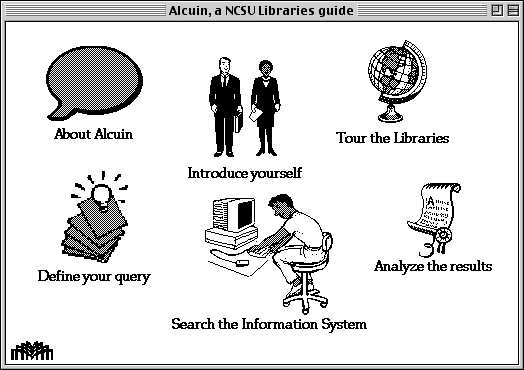This HyperCard/MicroPhone combination was the beginings of an expert system design to help users of the NCSU Libraries facilitate their learning, teaching, and scholarlship.
